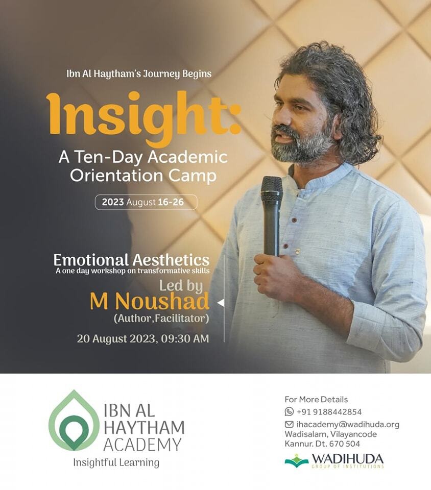 One of the many events that made our ten-day academic orientation camp ‘Insight’ (August 16-26, 2023) memorable was the workshop on Emotional Aesthetics by Muhammed Noushad. Held on 20th...